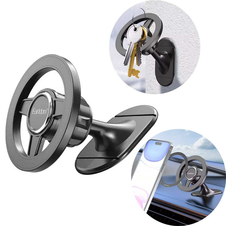 پایه موبایل داخل ماشین مغناطیسی ارلدام با استفاده از آهنربا اتصال مغناطیسی قوی را فراهم کرده است؛ جاذبه آن با دو رینگ فلزی که درون بسته قرار دارد و باید به پشت موبایل متصل شود است. همچنین قسمتی که به داشبورد متصل میشود دارای چسبی قوی است که در برابر گرما مقاوم است.